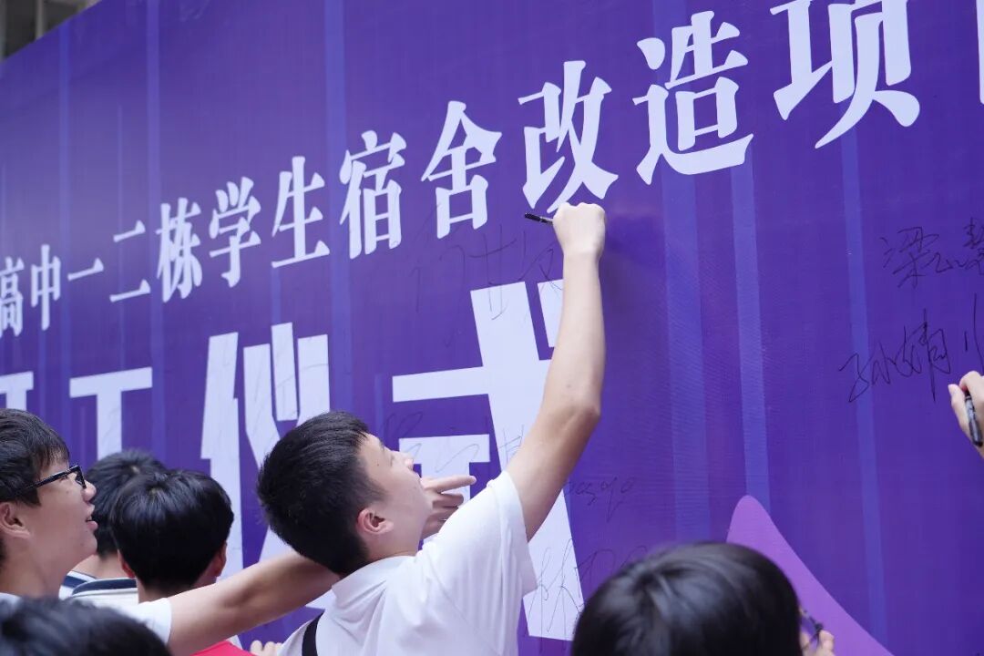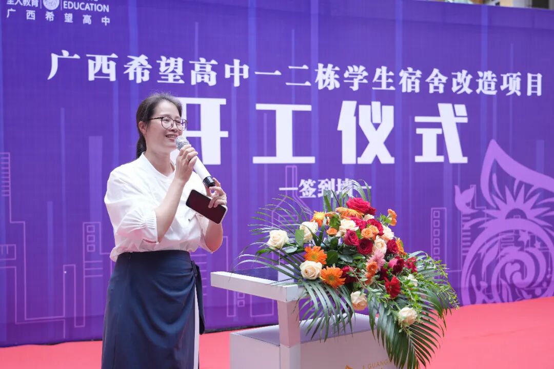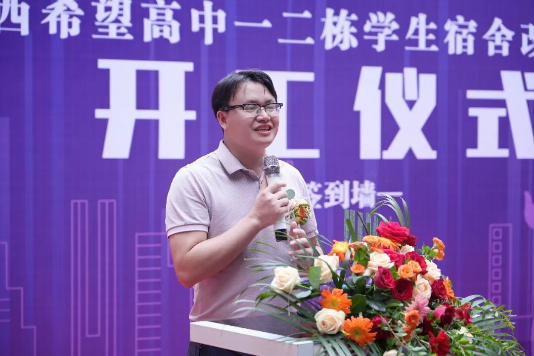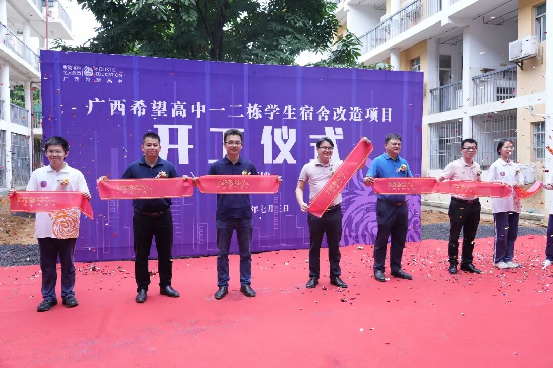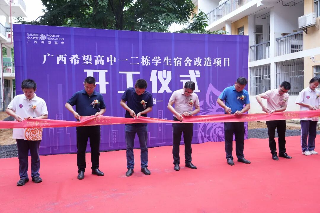 这一天的上午,学校在一二栋学生宿舍之间,隆重举行了广西希望高中一二栋学生宿舍改造项目的开工仪式,宿舍的升级改造由此拉开序幕,崭新的学生宿舍预计在9月份完工,与同学们在新学期见面。